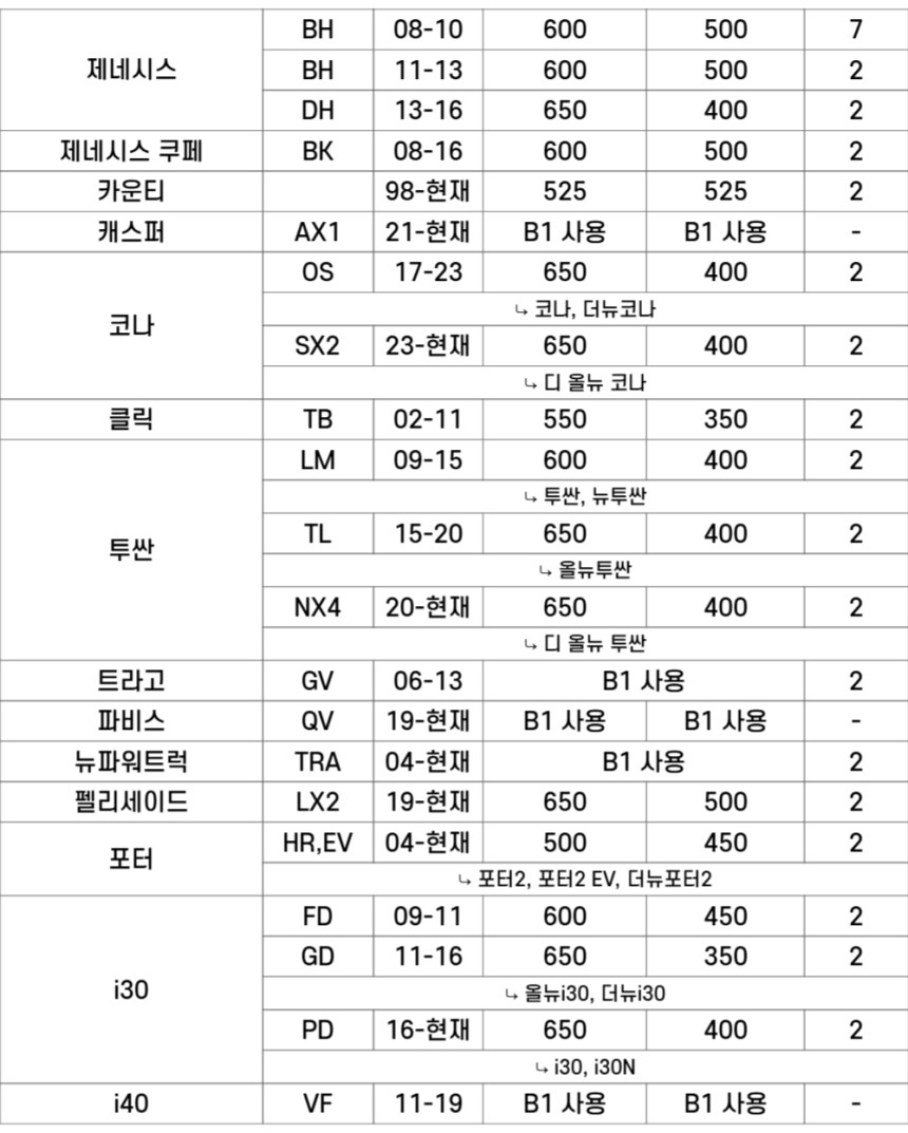 ✅ 현대차 와이퍼 사이즈