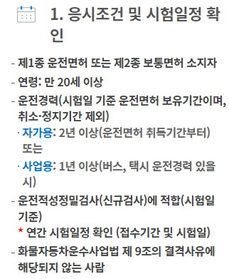 - 사업용: 1년 이상(버스, 택시 운전경력 있을 시)