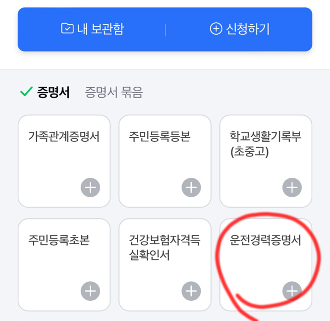 8. 발급받은 운전경력증명서는 '내 보관함'에 들어가면 확인이 가능하며 이걸로 모바일신분증을 대체할 수 있어요.