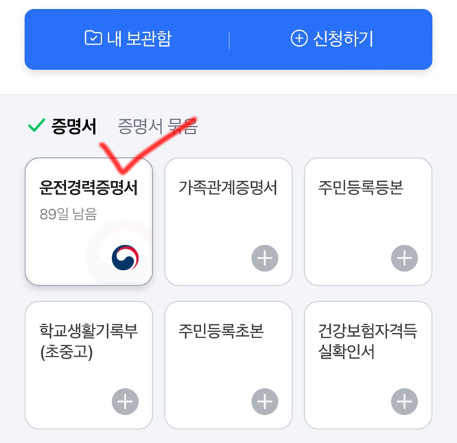 8. 발급받은 운전경력증명서는 '내 보관함'에 들어가면 확인이 가능하며 이걸로 모바일신분증을 대체할 수 있어요.