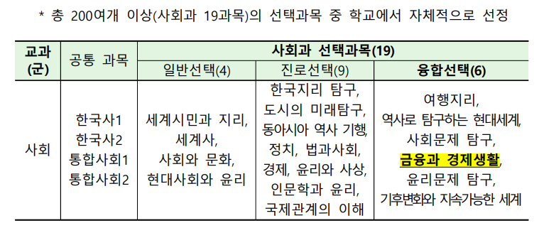 2025년부터 고등학생 금융 교육이 확대 되면서 선택과목으로 지정 될 예정인데요, 과목의 이름은 '금융과 경제생활' 이라고 합니다. 융합선택과목으로 신설되어서 2025년 상반기 중에 도입될 예정이라고 해요. 이미 시범적으로 도입된 곳도 있는데 2025년부터 차례로 도입된다고 합니다.