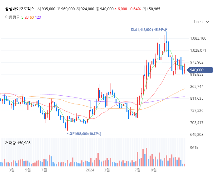 보너스로 삼성바이오로직스를 말하고 싶어요. 삼성바이오로직스는 삼성 그룹사가 모두 패망하는 이 시점에서도 꿋꿋하게 주가를 지키고 있는 대장주라고 할 수 있어요. 다만 고환율 관련주로 투자하기에는 주가가 너무 비싸고, 삼성그룹 내 지분 구조에 따른 장벽이 있기에 보너스로 적어뒀습니다.