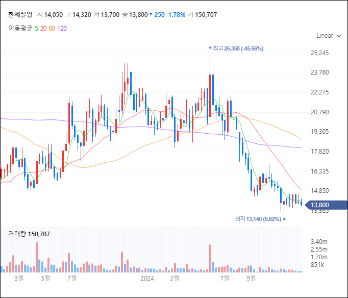 주가를 보면 알겠지만, 주가가 거의 반토막이 나있어요. 실적이나 재무 자체는 나쁘지 않은데 경기가 불황고 딱히 어떤 호재가 있는 기업도 아니기 때문에 코스피와 함께 흘러내리는 걸로 보여요. 2024년 실적이 발표되면 환차익으로 인한 어닝서프라이즈가 기대되는 기업입니다.