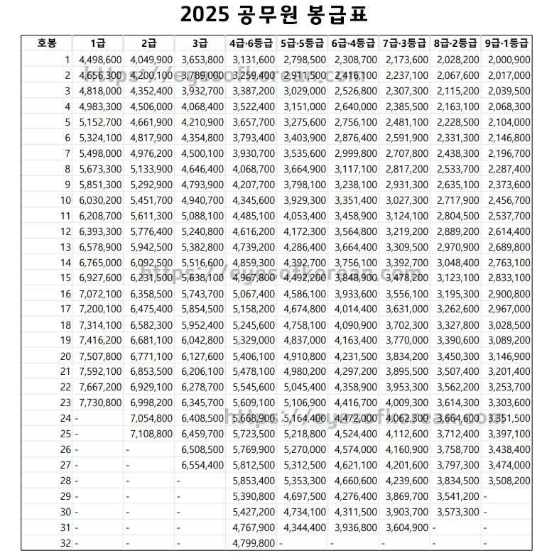 2025년 공무원 봉급표