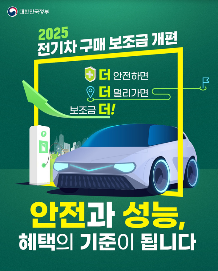 2024년에 비해 2025년 전기차보조금은 차종에 따라 삭감되기도 하고 인상되기도 했는데요, 사실 조건이 조금 까다로워지면서 실구매자들은 더 좋은 혜택을 받을 수 있을겁니다. 대신 중국산이나 km수가 적은 차종은 보조금이 삭감되겠네요. 2025년 바뀐 전기차보조금 삭감된 내용은 이 블로그에서 보셔도 되지만 아래 정부 홈페이지에 가셔도 볼 수 있어요.