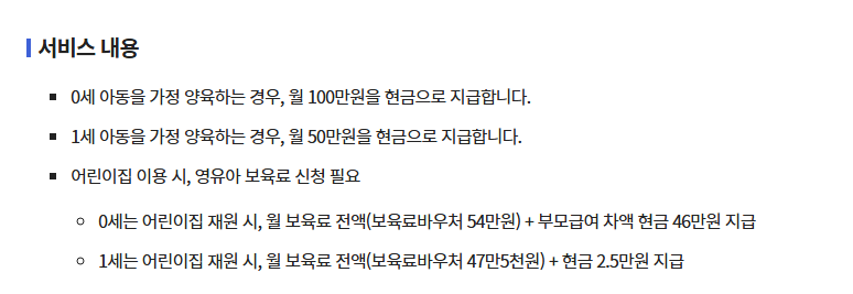 • 0세 아동: 월 54만원 보육료 바우처 + 차액 46만원 현금
