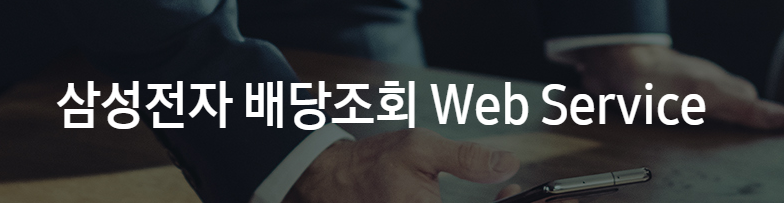 삼성전자는 배당금 지급에 관하여 아예 배당금 조회를 할 수 있는 웹사이트를 만들어버렸는데 바로 '삼성전자 배당조회 Web Servic' 라는 홈페이지입니다. 내 배당금이 얼마나 되는지 알고 싶다면 아래 사이트로 들어가시면 됩니다. 삼성전자 공식 사이트입니다.