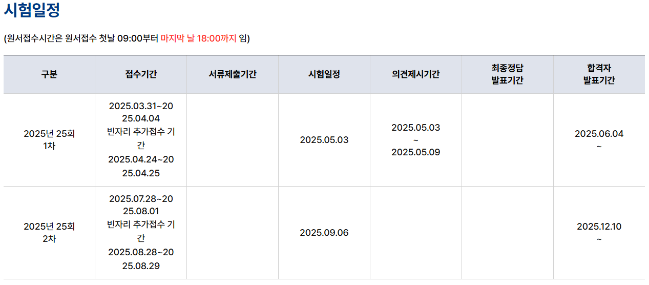 - 시험일: 2025년 5월 3일(토)
