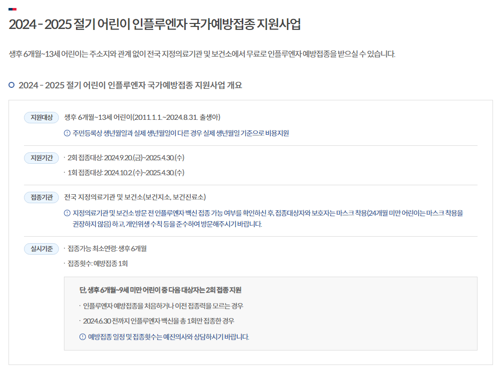 2024-2025절기 어린이 독감예방주사 지원사업을 잘 보면 지원대상과 지원기관, 접종기관, 실시횟수를 알 수 있습니다. 제가 이 블로그에서 설명해볼게요.