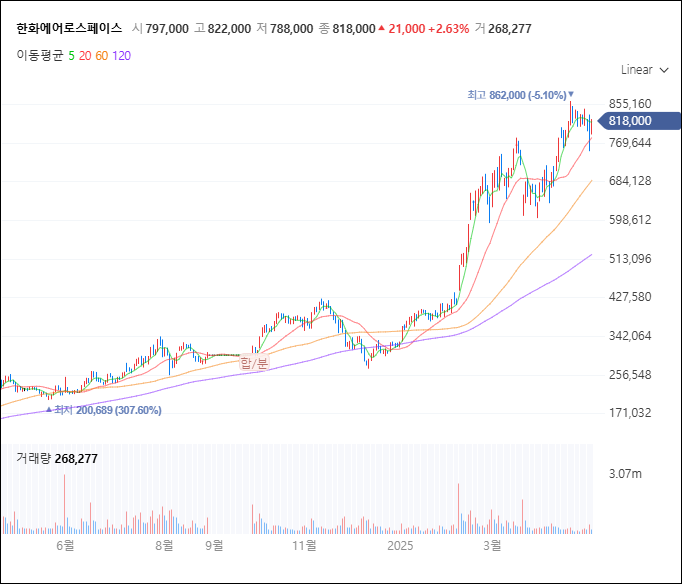 2025년 들어 이슈에 빠르게 반응하는 흐름을 보이고 있으며, 외국인 매수세도 강하게 유입되고 있어요. 실적까지 탄탄해서 저는 분할매수 포트에 항상 넣고 보는 종목 중 하나입니다. 한화에어로스페이스만큼은 아니지만 이 친구도 꽤나 오르고 있죠? 아이고 배야.