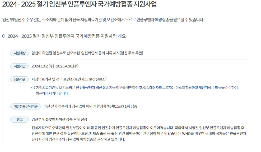 🛡️거두절미하고 임산부 인플루엔자 국가예방접종 지원사업은 아래에서 볼 수 있습니다.