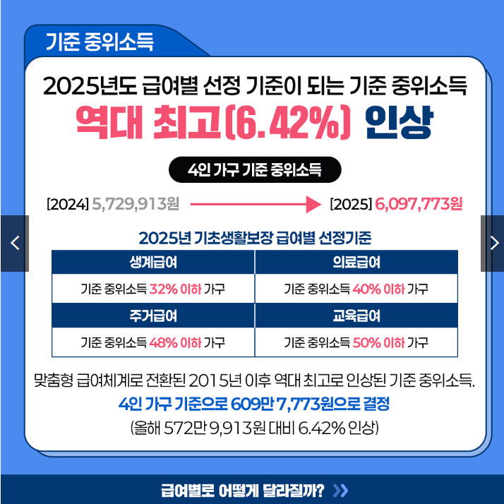 | 기준중위소득 증가율 | 6.09% | 6.42% | 0.33%p 증가 |