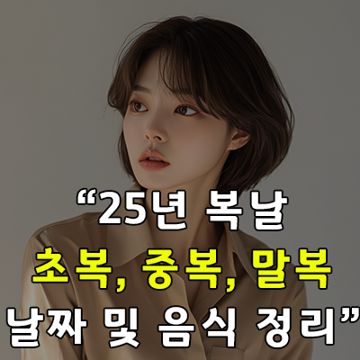 무더위가 시작되는 7월, 드디어 복날이 돌아왔어요! 오늘은 2025년 초복, 중복, 말복 날짜는 언제인지, 그리고 복날에 먹으면 좋은 음식 3가지를 제 경험을 곁들여 소개해드릴게요.