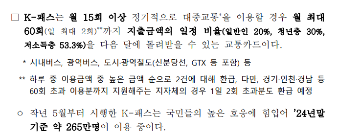 | 지자체 맞춤형 K-패스 | 일부 지역 | 확대 (광주, 경남 추가) |