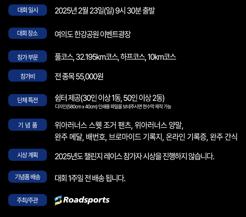 - 2025 챌린지 레이스 일정 : 2025년 2월 23일(일) 오전 9시 30분 출발