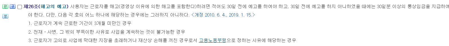 빨간색 글씨가 아주 중요하죠. 미리 예고해야 한다는 것! 미리 예고하지 않으면 한 달치 월급을 줘야 해요. 아래서 자세히 말해볼게요.