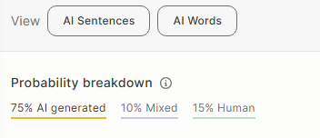 - AI 점수(퍼센트)와 인간 작성 추정 비율 동시 제공