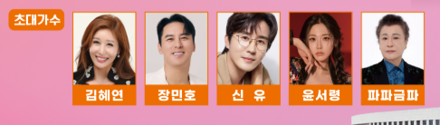 초대가수 라인업이 정말 화려해요! 다음 가수들이 무대를 꾸밀 예정입니다.