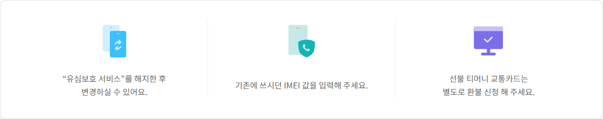 eSIM변경 시 주요 유의사항은 아래 이미지 눌러서 확인해주세요. 선불 모바일 티머니의 잔액은 별도 환불이 필요하다는 점! 기존 IMEI값을 그대로 사용하기 때문에 해킹에는 위험할 수 있다는 점 분명 말씀드립니다! 이상으로 글 마칠게요 ^^ 좋은 하루 되세요.