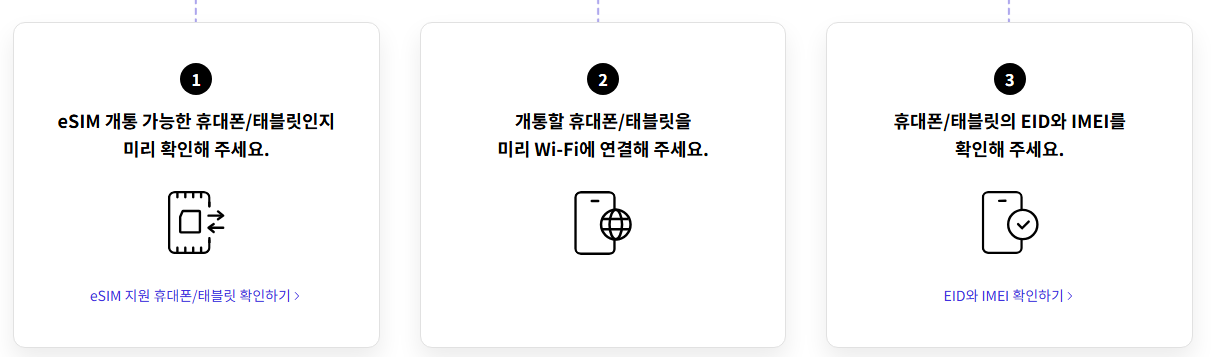 - 알뜰폰 사용자는 MVNO 사업자의 ESIM 지원 여부 확인 필요