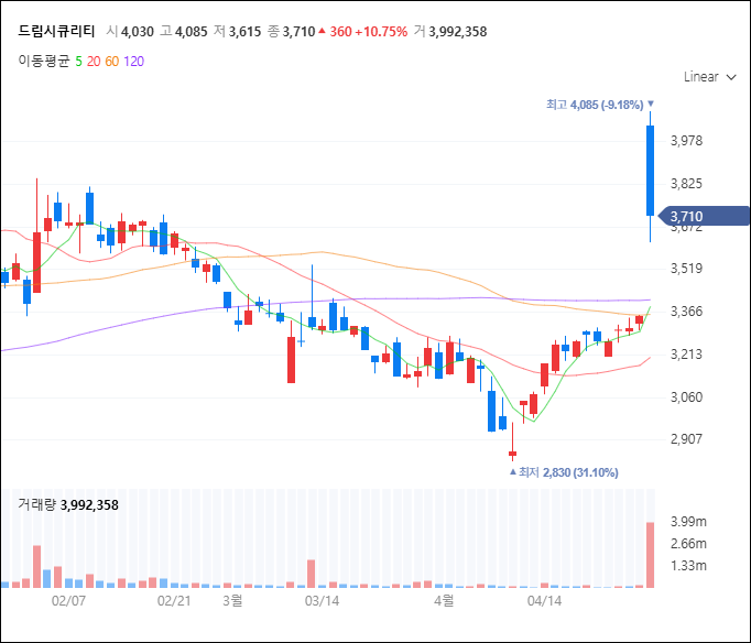 모바일 본인인증, 전자서명, 모바일 보안 솔루션을 전문으로 하는 대표적인 보안 기업입니다. 이번 사건으로 인해 본인 인증 방식 전반이 강화될 것으로 예상되기 때문에, 드림시큐리티는 단기·중장기 모두에서 수혜가 기대돼요.