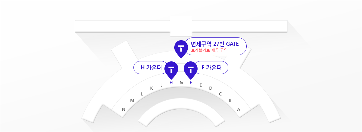 • 제1터미널 3층 면세구역 27번 GATE, H카운터, F카운터
