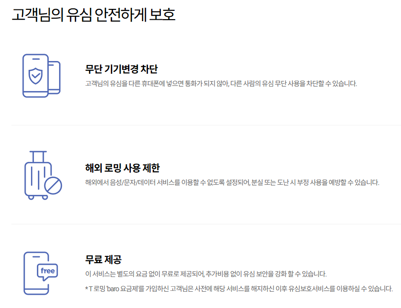 SKT의 유심보호서비스는 무료로 제공됩니다. 특별한 요금제 제한도 없고, 본인 명의 회선이라면 누구나 신청할 수 있어요. 저는 SKT 쓰는 가족들에게도 다 가입시켜줬어요. 5분이면 끝나니까요. 제발 하세요.