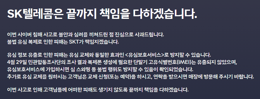 🏃거두절미하고 SKT유심칩 재설정 방법에 대한 공식 공지사항 보러 가보세요. 아래 페이지로 이동하면 됩니다.